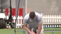 Matthew Potts, Stuart Broad & Jack Leach warming up for training