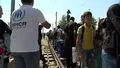 Refugees on railway line on border with Macedonia
