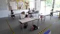 School children in socially distanced classroom