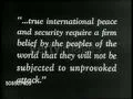 The transcript discusses the United States entering a peacetime alliance with European nations through the North Atlantic Treaty. This treaty, involving America, Canada, and six European countries, establishes a mutual defense pact against any aggressor. The agreement is simultaneously announced by all participating countries, stating that an attack on any member nation is considered an attack on all. The pact is well-received by England and Canada, which already have defense agreements in place.