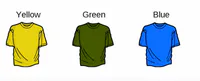 The colors of t-shirts (yellow, green, blue).