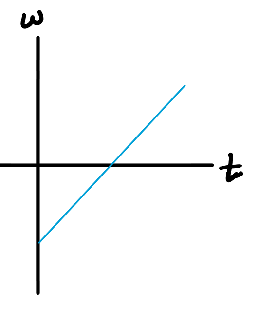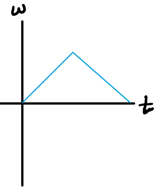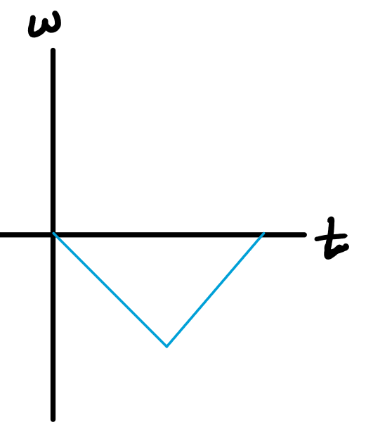 From the sensor's "point of view", the turn table started at rest, began to turn CW while speeding up, then started slowing down (when the mass bounced off the floor) while still spinning CW. What would the angular velocity vs. time graph look like?