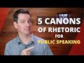 What is the primary purpose of the five canons of rhetoric in public speaking?